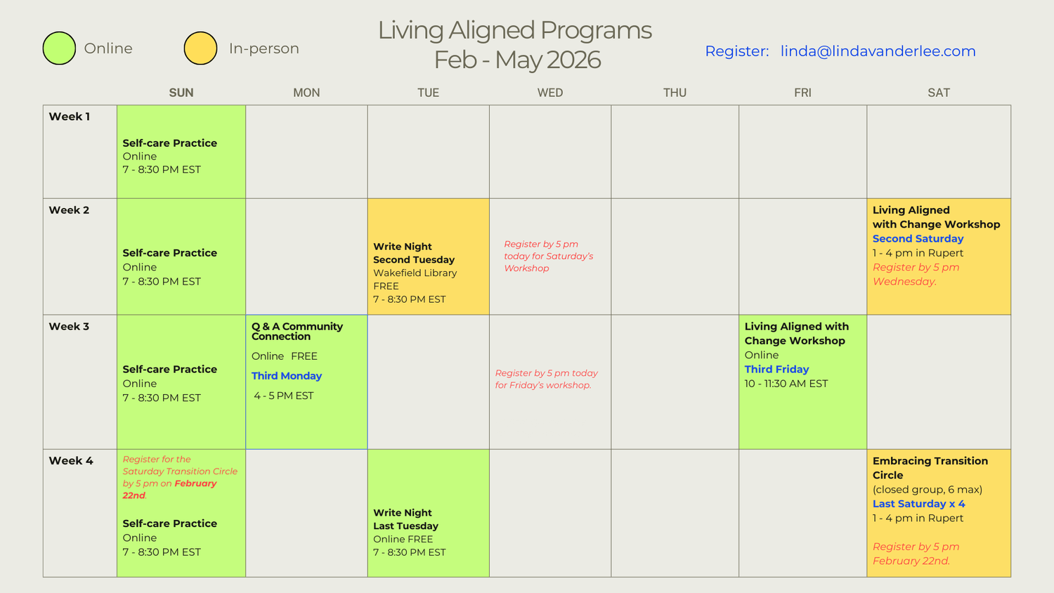 Contact Linda here to receive the zoom link or if you have any questions.